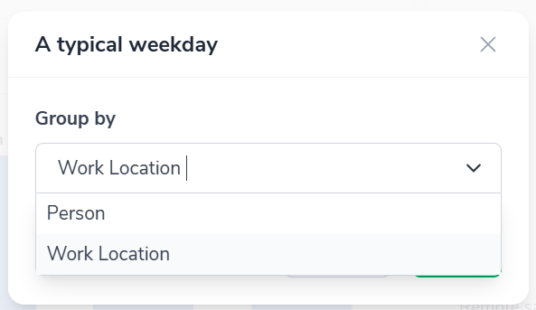 Bar chart displaying daily supporting hours by a customizable area (e.g. Work location, Weekday)