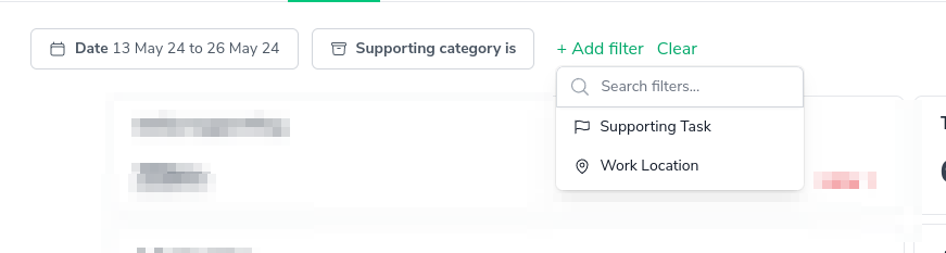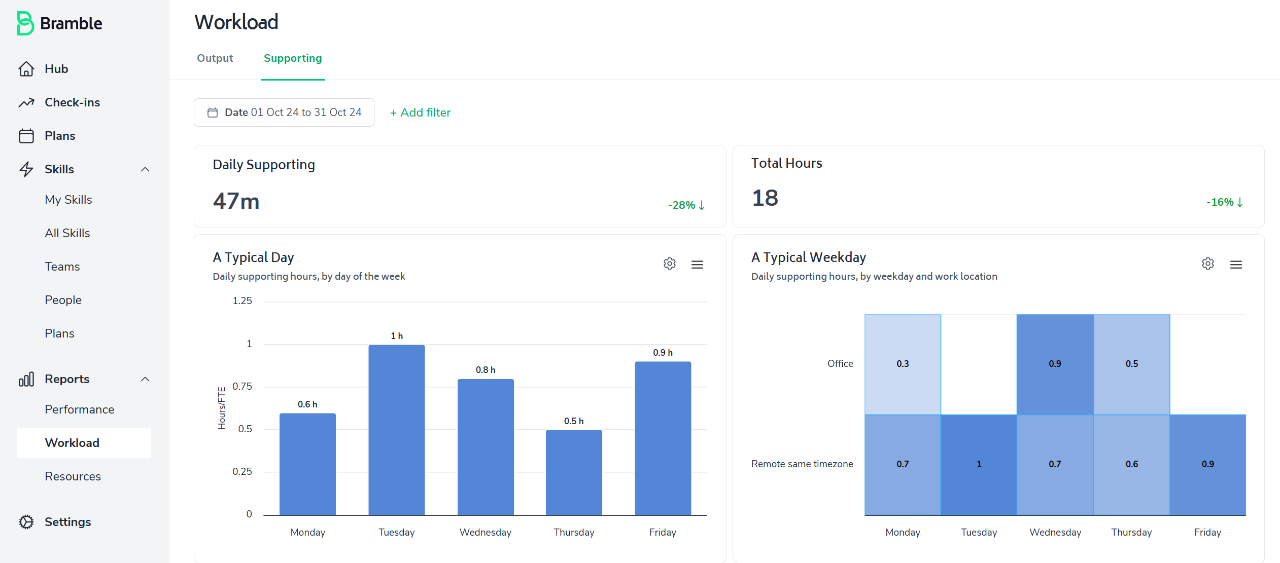 Total Supporting Hours - the total time on Supporting Tasks over the selected date-range
