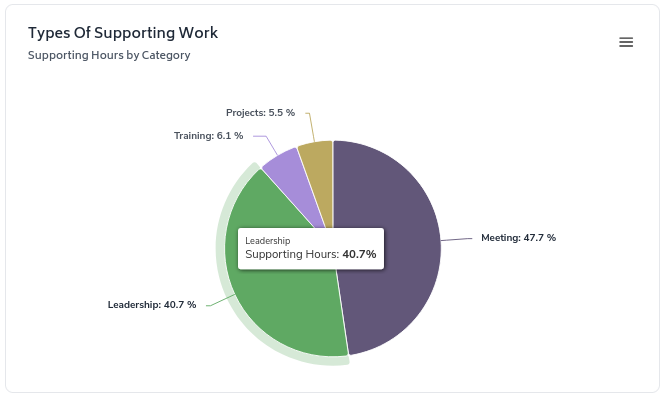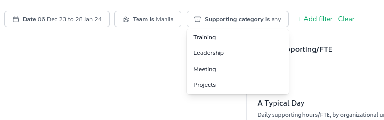 The Supporting Report is located alongside Performance reports, making it easy to explore related concepts and metrics in your productivity module, but is solely focused on Supporting Tasks.. The metrics are curated specifically through the team member and team lenses, ensuring that only relevant data is considered, allowing users to: