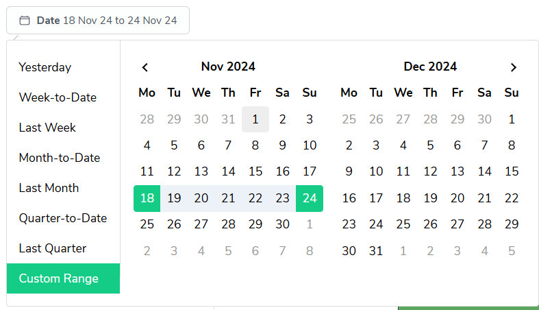 As with most reports in Bramble, you can run this report over any date-range by simply selecting the time period you'd like from the date filter: