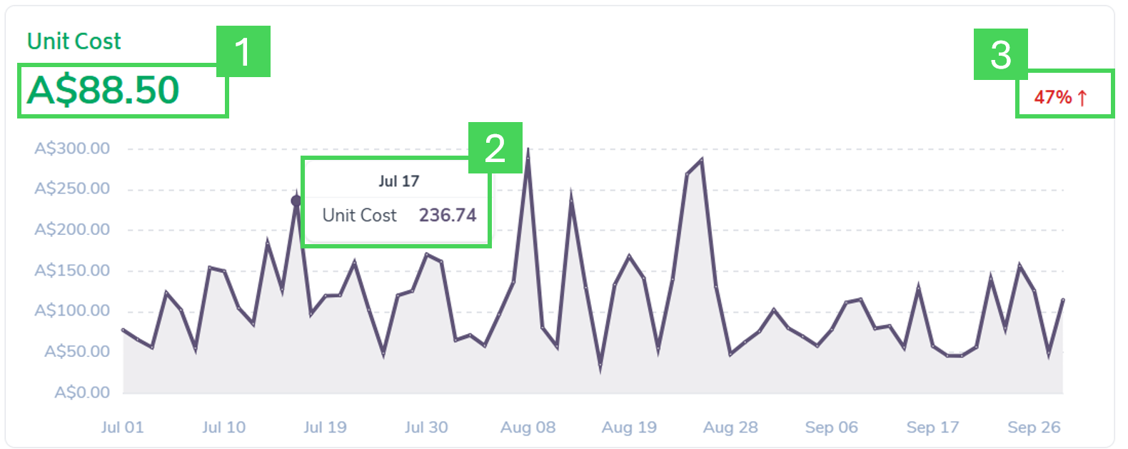 For instance, if you wish to dig-deeper into the Unit Cost, simply click on the Unit Cost metric presented in the top-left of the chart element to navigate to the Process - Overview report.