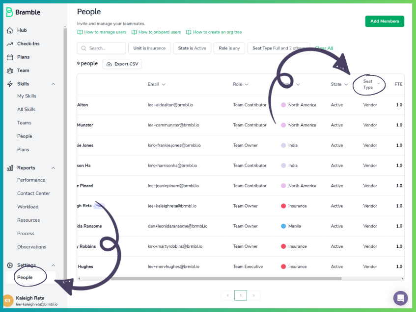 In the People table under Settings, there is now an additional column called 'Seat Type' displaying what set type of the above 3 has been applied to each user: