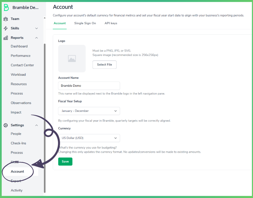 Fiscal Year Setup: Aligns Bramble's reporting structure with your business’s financial year.