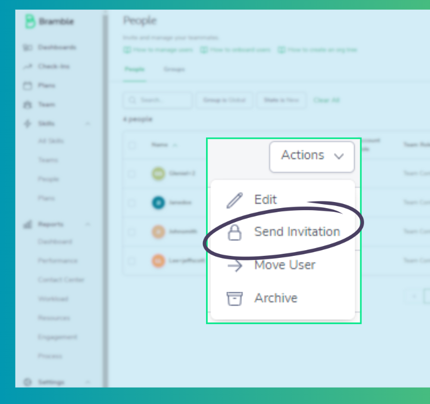 Archive - Archive the user's record if they are no longer with the company, or have moved to a team in the company that is not using Bramble.