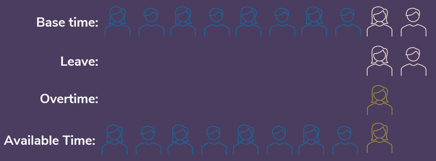 Base Time - the total potential resource hours in a Team (Group). Base Time does not include Leave, Overtime or Temporary Staff