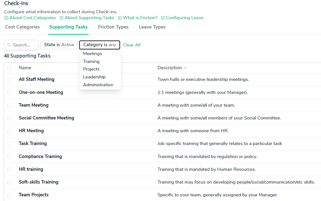 By collecting Supporting Tasks, we are able to gain an understanding of the utilization of an individual, team or department