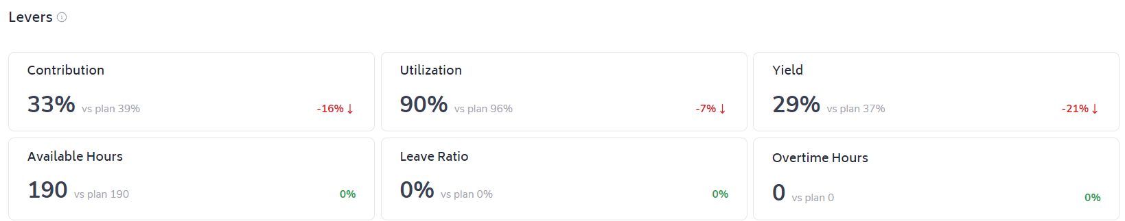 In the example, we can see zero variance across Available Hours, Leave Ratio and Overtime Hours. Simply put, everything across these metrics went according to plan.