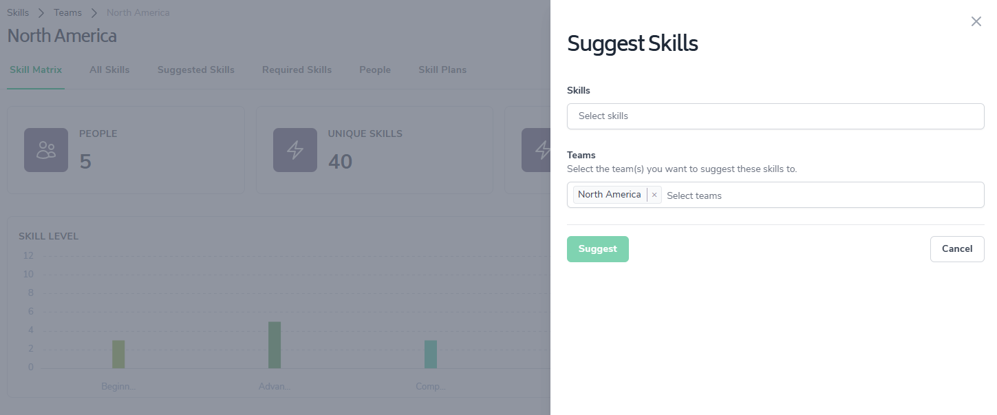 Select the team(s) you want to suggest the skill to. If you manage more than one team, you can choose to suggest the skill to one or more teams.