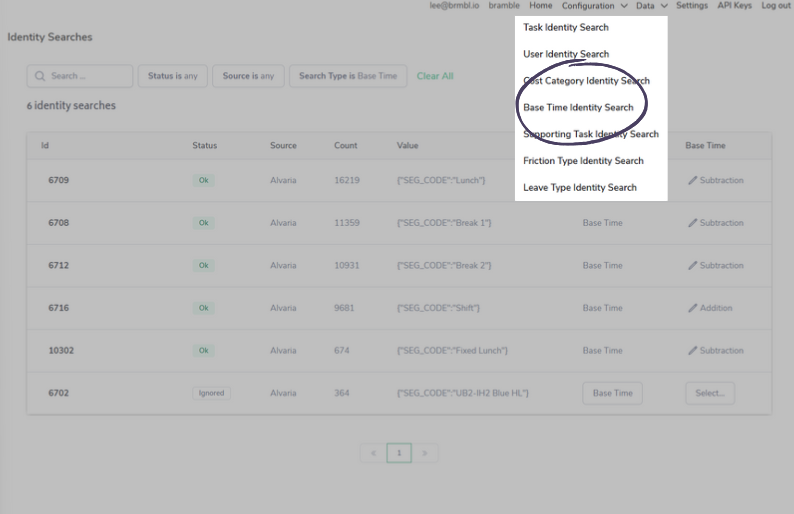 Base Time Identities are how Bramble ensures that scheduled work time data being uploaded into the Connector is populating the Base Time section of Member Plans in Bramble correctly.