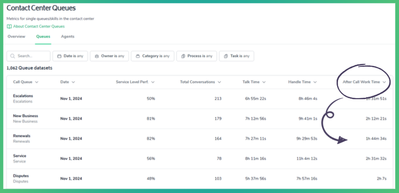 ACW appears on all contact center tables and is an essential component of the overall handle time. While it's important to minimize ACW to improve efficiency, it's also crucial to ensure that agents have enough time to complete necessary tasks accurately and thoroughly, ultimately contributing to a positive customer experience.